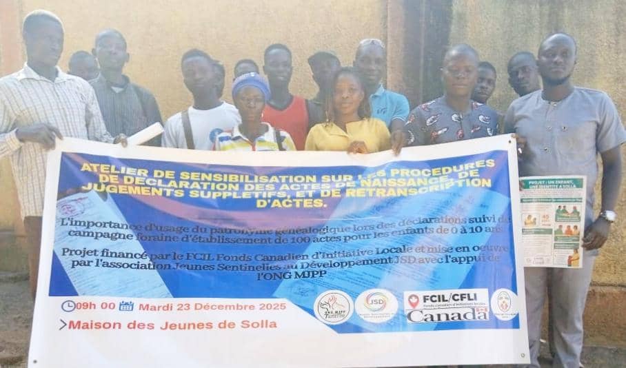 Tags: acte de naissance, Commune Binah 1, CVD, déclaration de naissance, droits de l’enfant., enfants, FCIL Canada, Jeunes Sentinelles, jugements supplétifs, MJPP, sensibilisation communautaire, Solla, Togo, transcription d’actes, Un enfant une identité décembre 25, 2025 dans A la Une, Education et Santé, Société 0 Commentaire »
