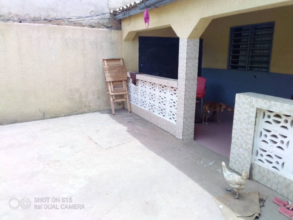 Mini villa composée de 2 chambres salon wc douche interne cuisine externe tulées plafonnées plus une dépendance avec boutique située à un bon emplacement.