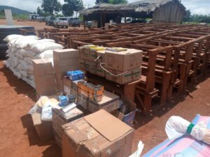 Il est composé de vivres, de fournitures scolaires, de tables bancs et des équipements médicaux divers, et vise à permettre aux populations déhsérités d’embrasser avec sérénité et égalité de chance la rentrée des classes, de réduire leur état de précarité et de leur fournir des soins de santé adéquats au moindre coût.