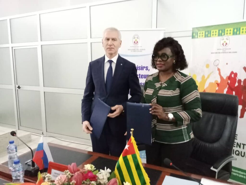 Le 25 avril dernier, le Togo et la Russie ont renforcé leur lien de coopération dans le domaine du sport. En effet, une convention de partenariat a été signée en présence des officiels du sport Russe notamment le ministre des sports et de la jeunesse Russes et la ministre du sport au Togo Dr Lidi BESSI-KAMA.
