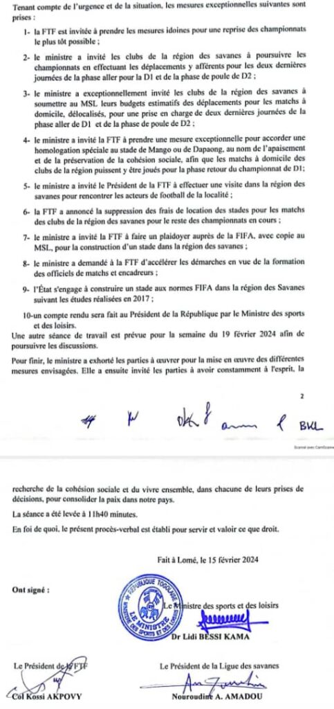 La rencontre d’échange initiée par la patronne des sports au Togo la ministre Lidi BESSI KAMA entre la fédération togolaise de football et la ligue régionale de football des Savanes pour apaiser les ardeurs semble porter des fruits.