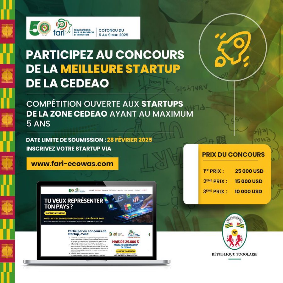 Le ministère togolais de l’Enseignement supérieur et de la Recherche a annoncé le lancement d’un concours visant à récompenser la meilleure startup de l’espace CEDEAO. Cette initiative s’inscrit dans le cadre du Forum Africain de la Recherche et de l’Innovation (FARI) et ambitionne de dynamiser l’écosystème entrepreneurial régional en mettant en lumière les jeunes entreprises innovantes.