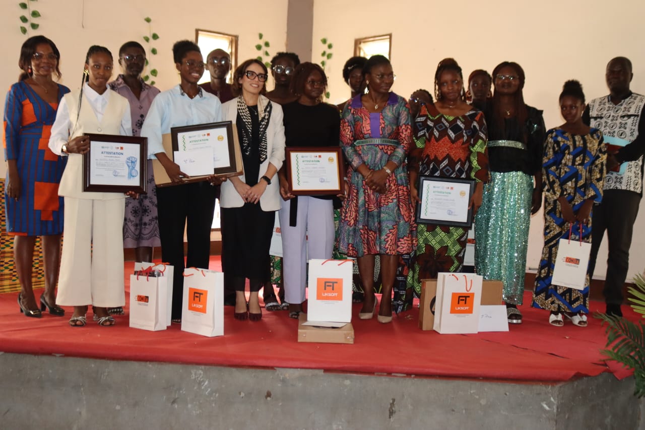 À l’issue de la compétition, Douti Dioktante Bénédicte (étudiante en Master 1 Médecine, FSS-UK) a remporté le premier prix grâce à une prestation brillante. Elle bénéficiera notamment d’un voyage de découverte en Chine, en plus d’un tableau d’honneur, d’un ordinateur, d’une enveloppe financière et de gadgets offerts par les partenaires CONIIA et LIKSOFT. Mireille KOUGNON (étudiante en Master 1 Médecine, FSS-UK) arrive deuxième et reçoit un ordinateur, un tableau d’honneur, une enveloppe financière et des gadgets CONIIA/LIKSOFT. Agate AMANA Catherine (étudiante en Master 1 Recherche Chimie de l’Environnement à UK) occupe la troisième place avec un ordinateur, un tableau d’honneur, une enveloppe financière et des gadgets CONIIA/LIKSOFT. Le Prix du Public revient à ISSIFOU Herline (3ᵉ année Médecine, FSS-UK), récompensée par un tableau d’honneur, une enveloppe financière et divers gadgets CONIIA/LIKSOFT. Toutes les participantes ont reçu des prix de participation, composés de gadgets et d’un pagne wax hollandais, témoignant de la volonté des organisateurs de valoriser chaque contribution.